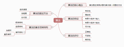 - 核心概念:在有限的步骤内解决某一个问题所使用的方法。